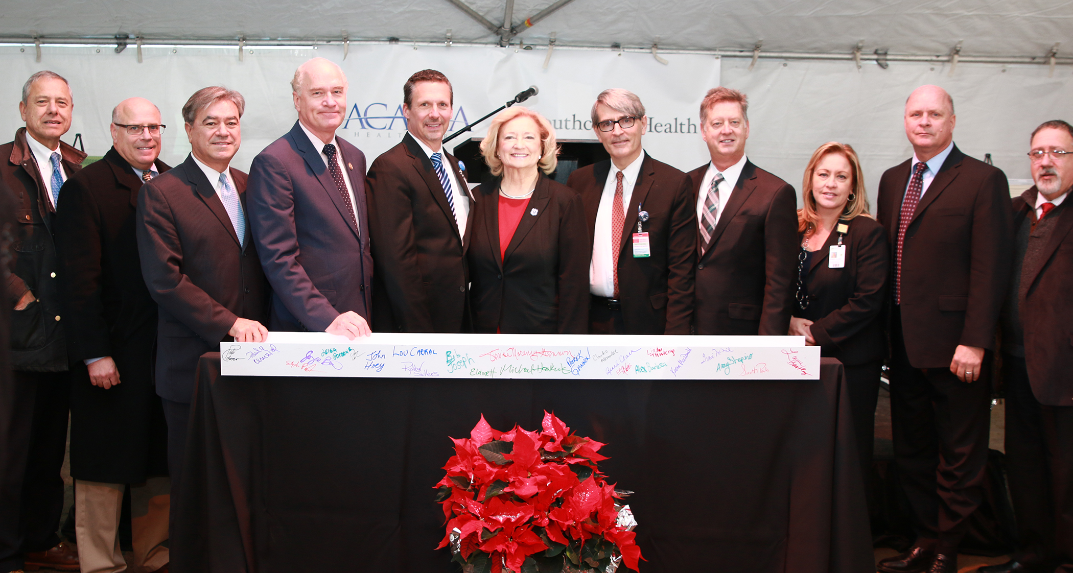 DARTMOUTH, Mass. – Acadia Healthcare and Southcoast® Health today held a topping-off ceremony to signal the completion of steel work on the $30 million behavioral health hospital at 581 Faunce Corner Road in Dartmouth. The topping-off ceremony marks the placement of the last steel beam into the new structure, and is said to stand as a symbol of luck and good fortune for all future occupants.