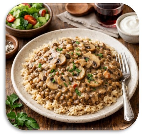 Try one of Dr. Davidson’s favorite heart-loving recipes: Vegetarian Lentil & Mushroom Stroganoff