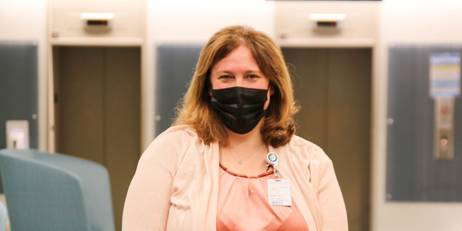 Medical social work, like other health professions, is demanding. It requires social workers not only taking care of the people who come through the door seeking help, but also taking care of themselves. Rebecca V. says that the social work team supports one another. When handling crises, there’s no time to process in the moment. “I connect with my social work colleagues as much as I can. And I reach out for supervision when I need it.”
