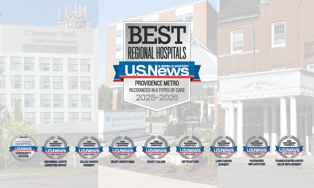The U.S. News & World Report announced Tuesday, July 29, that Southcoast Hospitals Group – including Charlton Memorial, St. Luke’s and Tobey – ranked #13 on its list of Best Hospitals in Massachusetts and #1 in the Providence Metro Area for 2025-2026.