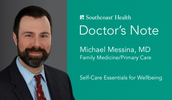 Self-care is crucial for maintaining overall well-being, which includes your physical, mental and emotional health. According to Dr. Michael Messina, Primary Care Provider at Southcoast Physicians Group Family Medicine in Wareham, “Self-care means allotting time in your busy day to do things that promote your own well-being. Find time to focus on yourself.”