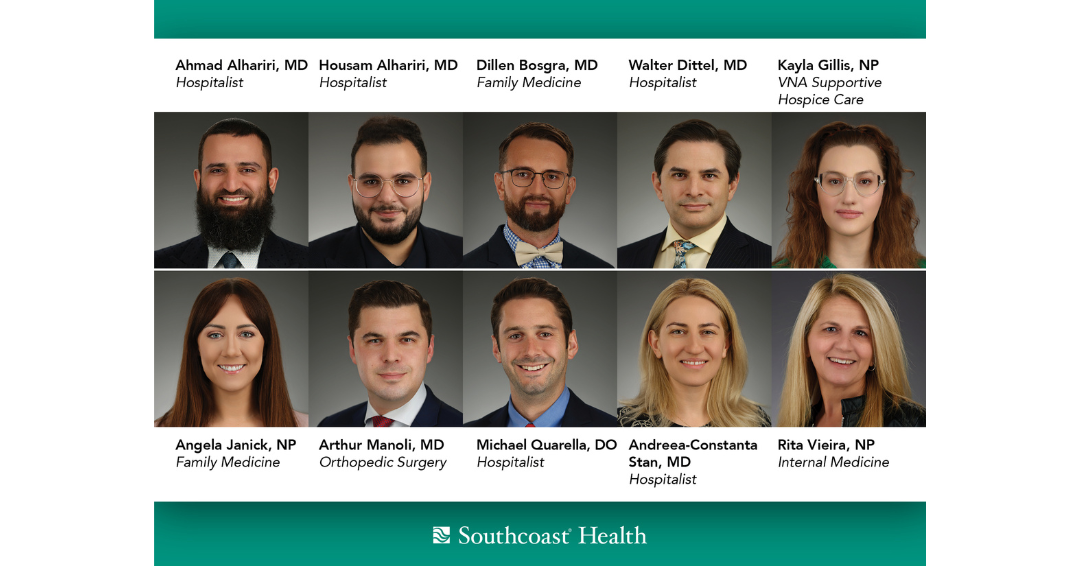 Southcoast Health is delighted to welcome Dr. Ahmad Alhariri, Dr. Housam Alhariri, Dr. Walter Dittel, Kayla Gillis, Angela Janick, Dr. Arthur Manoli, Dr. Michael Quarella, Dr. Andreea-Constanta Stan and Rita Vieira to our organization.