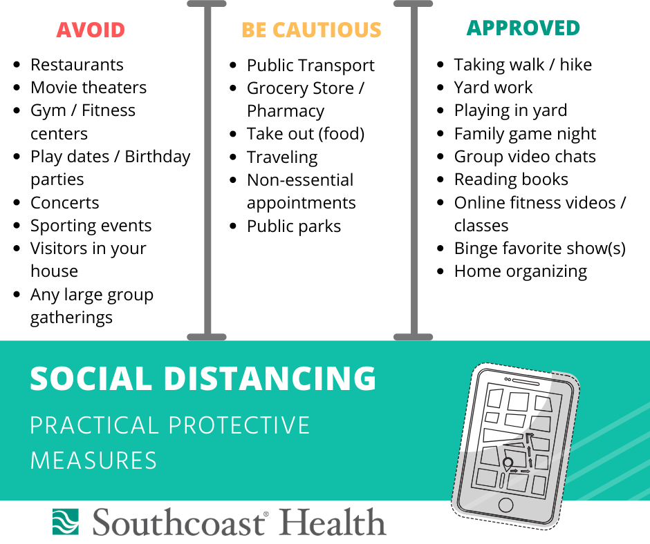 In response, many Americans have taken steps in reducing person-to-person contact and social gatherings. One step in reducing close contact is social distancing. Social distancing is known as intentionally increasing the physical space between people. Social distancing becomes obvious as the virus is thought to spread mainly from person-to-person. More specifically, between people who are in close contact with one another, within about 6 feet. (Centers for Disease Control and Prevention, 2020) While the idea of social distancing may feel isolating for many, these measures are the best way to help interrupt or stop the spread of infection and to allow the health care system to readily and promptly care for patients.