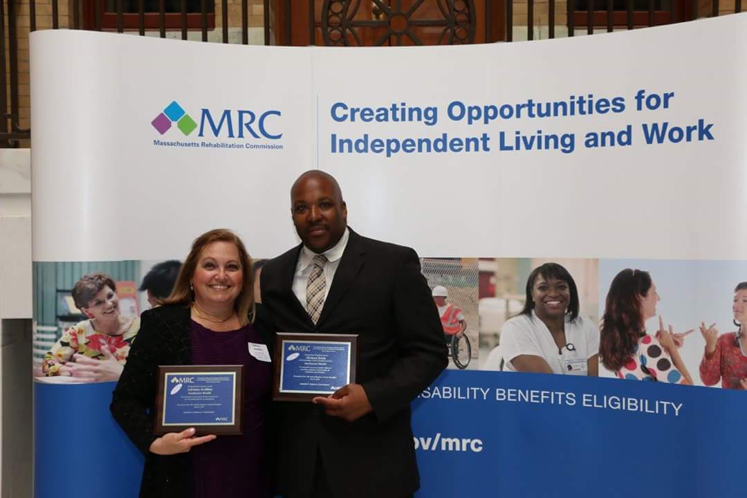 NEW BEDFORD, Mass. — Southcoast Health announced today that Adriana Avellino and Michael Bobb were recently honored by the Greater Boston Employer Advisory Board (GBEAB) to the Massachusetts Rehabilitation Commission (MRC) for their efforts to promote employment opportunities for individuals with disabilities. At the GBEAB’s 19th Annual Employer Awards Breakfast on June 9, Avellino received the Distinguished Consumer Award and Bobb was a Distinguished Employer Award recipient.